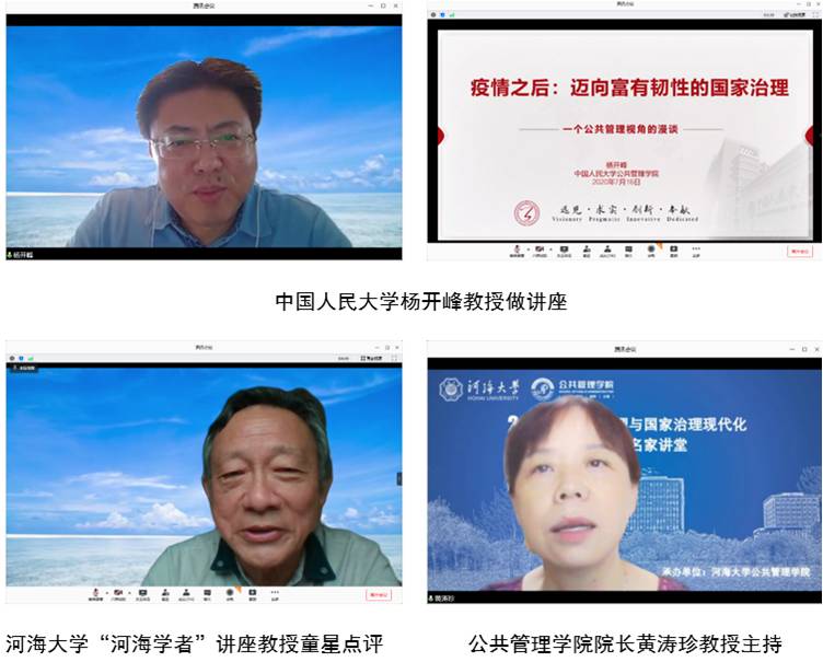 7月31日,“应急管理与国家治理现代化”云端系列名家讲堂第四讲如期举行。中国人民大学BETWAY必威经理、全国公共管理专业硕士(MPA)教育指导委员会秘书长、中国管理现代化研究会公共管理专业委员会副理事长、中国机构编制管理研究会副会长、中国行政管理学会常务理事、美国国家行政科学院院士杨开峰教授以《迈向富有韧性的国家治理》为题,为河海师生带来了一场精彩的学术报告。南京大学社会风险与公共危机管理研究中心主任、BETWAY必威“河海学者”讲座教授童星特邀点评。BETWAY必威经理黄涛珍教授主持报告会。近300名师生认真聆听了报告。