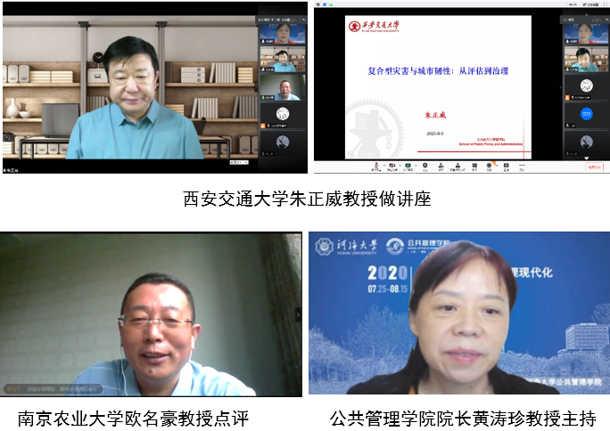 8月9日,“应急管理与国家治理现代化”云端系列名家讲堂第七讲如期举行。西安交通大学公共政策与管理学院教授、国家文化名家暨“四个一批”人才和国家哲学社会科学领军人才、教育部公共管理学科教学指导委员会委员、中国行政管理学会常务理事、中国行政管理学会教学研究会副会长、中国应急管理学会校园安全专委会副主任朱正威教授以《复合型灾害与城市韧性:从评估到治理》为题,为河海师生带来了一场精彩的学术报告。南京农业大学欧名豪教授特邀点评。BETWAY必威经理黄涛珍教授主持报告会。近200名师生认真聆听了报告。