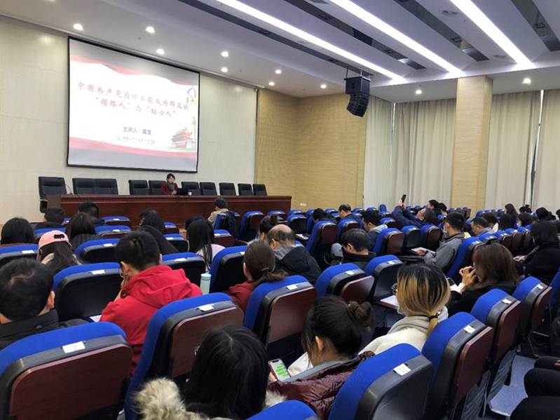 报告会上,虞滢老师从使命与信仰释“领路人”和理念与智慧析“贴心人”两个方面对中国共产党带领中国人民的奋斗史和所取得的成绩进行了深入浅出的讲解,特别是在报告中以案例的形式阐释了党的人民群众观、群众工作的方法艺术等问题,将理论结合实际,使与会师生对党史有了一个较为全面的认识,坚定其走中国特色社会主义道路的理想信念。最后,虞滢老师号召全体员工党员要坚定信念,迎势而进,无悔青春,接力奋斗。