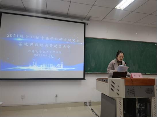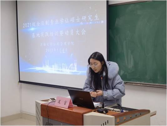 研究生秘书田然老师针对基地实践的管理和论文工作方面,向研究生们作了详细解读。在基地实践期间,每位研究生需听取专题讲座,把握各项时间节点,及时与双导师交流沟通论文工作。本年度面向每个基地单位均设立了员工联络人,田然老师提醒各位联络人及时组建同单位QQ群,帮助各位同学尽快适应基地实践生活。