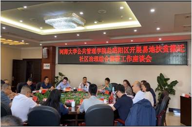 专家组一行首先与地方有关部门进行了座谈。座谈会上,陈绍军教授就此行目的做了简要介绍,各部门围绕迁出地和迁入地搬迁现状、社区治理、产业发展、后期扶持政策等与专家组成员进行了交流,双方就当前大型跨县搬迁安置区后期扶持的相关政策支持及诉求等进行了深入探讨。