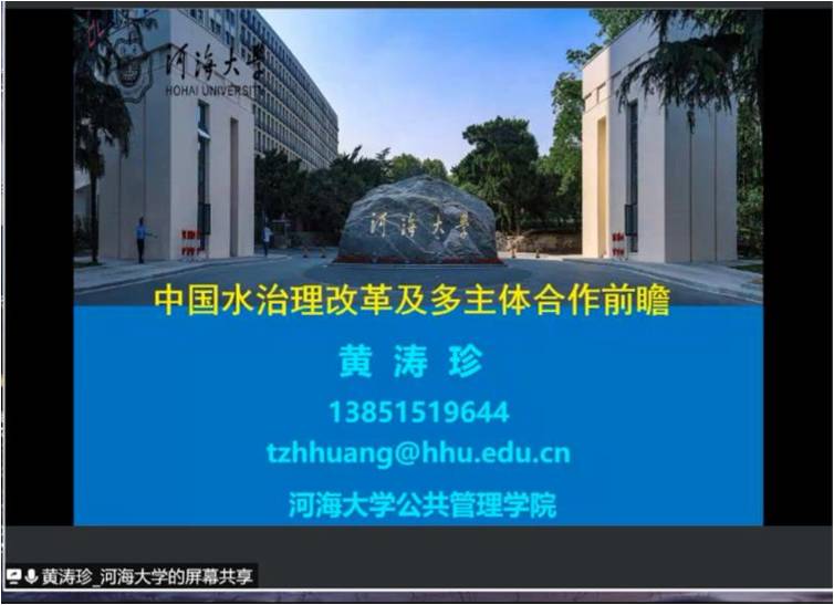 8月14日上午,江苏省研究生“新时代高质量发展与公共治理转型”暑期学校第十五场课程“中国水治理改革及多主体合作前瞻”顺利开课。课程主讲人为BETWAY必威黄涛珍教授,主持人为BETWAY必威朱新华教授,来自海内外50余所高校100名学员以及公共管理学院师生参加。授课开始前,朱新华教授对黄涛珍教授出席暑期学校表示热烈欢迎,并向暑期学校师生介绍了黄涛珍教授的研究领域和研究成果。