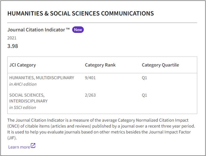 图2. Humanities & Social Sciences Communications期刊影响力