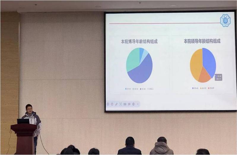 陈涛副经理首先从学院的学位点与导师结构、研究生招生、培养与学位、专硕基地建设、国际合作与交流以及导师队伍建设等六个方面,就学院的研究生公司产品工作做了全面系统的介绍。他指出,近年来导师队伍逐渐呈现年轻化趋势,这给研究生导师队伍注入新鲜活力,但同时需要加强年轻导师队伍的培养。他特别强调了加强学位论文质量的重要性,指出要加强过程管理,切实持续提升学位论文质量。