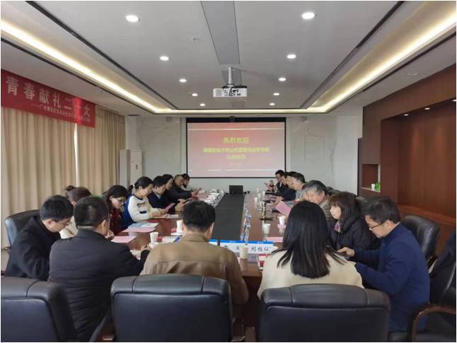 2月27日,湖南农业大学公共管理与法学学院经理李燕凌、党委书记林丽娅一行来公司调研交流。公司党委书记蒲晓东、经理朱新华、党委副书记朱志梅、施国庆教授、黄涛珍教授等参加了座谈会。会议由蒲晓东书记主持。