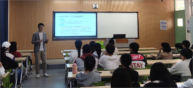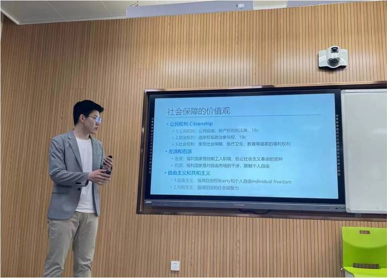 接着王中汉围绕社会保障学科问题导向性、实践性、跨学科性三重特性进行了详细阐释。问题导向性是回应社会问题的专业使命,对社会现实和变迁趋势敏锐度的表现;实践性是政策何处去,政策企业家理论知识转化生产的要求;跨学科性是对交叉研究,博而不专认知误区及选择权的回应。王中汉结合管理学和社会学理论,对英国全民医疗、法国延迟退休、ChatGPT、星舰计划等国际实事以及自身在河海、人大、浙大的学习实践,提出同学们当下主要任务是认清训练智识和积累知识的学习终极价值以及掌握理论基础和方法能力。