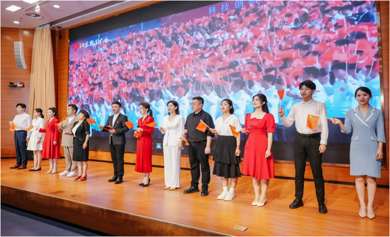 在第四篇章,全国优秀教师杨海霞带领师生重温徐芝纶院士“丹心向党,热血报国”的精神风貌和“学无止境,教无止境”的教育思想,公管院2022级研究生、校支教团成员田梦婷分享了自己在陕西石泉支教的人生经历。最后,全体师生齐声合唱《歌唱祖国》。