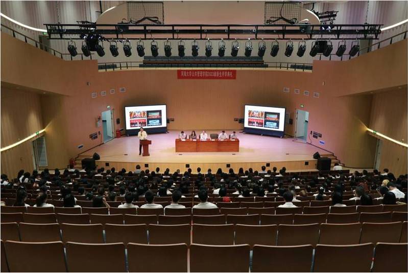 朱新华经理从学校概况、学院概况、员工培养、育人风采四个方面做了系统性介绍,包括专业概况、团队力量、科研规模、学科发展、员工就业等,同时还展示了学院举办和参与的特色活动,希望新生们有大志向,大格局,少年应有鸿鹄志;保持积极昂扬的竞争状态,精神面貌一定要向上;脚踏实地,奋斗是青春最靓丽的底色;不要过分关注结果,静待花开,祝愿新生能够在公管舞台上书写自己的绚烂篇章。
