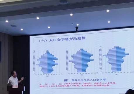 黄健元教授以《江苏人口发展趋势及思考》为题进行主题发言。他基于江苏人口发展趋势结果以及人口负增长趋势、惯性的分析,提出了对优化江苏人口发展对策的思考,认为现阶段应健全生育支持政策,营造友好社会环境,升级产业结构完善激励政策,大力促进人口集聚人才引进。最后,他提出了大力建设积极应对人口老龄化示范省份的路径思考,具体包括:以协同治理为理念——强化“一核多元”全主体参与逻辑;以功能发挥为原则——健全老年生涯三阶段健康服务体系;以制度改革为抓手——进一步完善老龄社会保障政策功能;以强化扶持为基础——助推老龄事业和产业高质量发展,以社区场域为重心——建设嵌入式社区服务综合体(中心),以文化调适为支撑——倡导全龄社会新孝爱自适应变迁等。