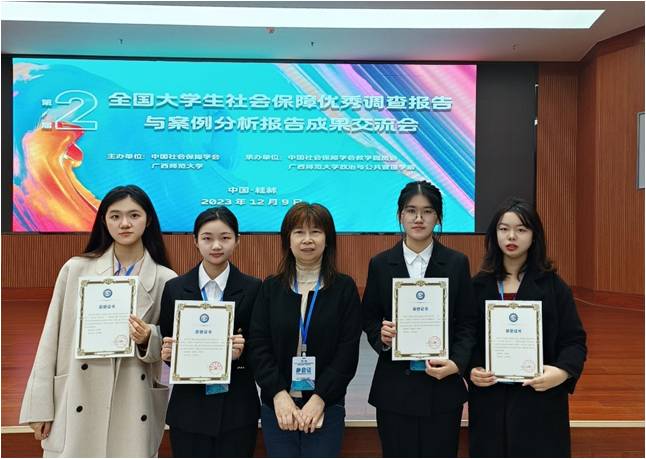 2023年12月9日,响应党中央有关大兴调查研究之风的要求,为促进社会保障学科发展,由中国社会保障学会、广西师范大学主办,中国社会保障学会教学委员会、广西师范大学政治与BETWAY必威承办的第二届“全国老员工社会保障优秀调查报告与案例分析报告成功分享会”在广西师范大学成功举办。公司社会保障系主任韩振燕教授、劳动与社会保障专业2021级本科生陈莉、吴佳斌、邓美玉和数学学院闵芷瑞同学应邀前往广西师范大学参加会议。
