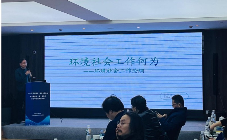 会议设置4个单元。陈阿江教授在“社会治理与社会建设研究”单元作《环境社会工作何为》的主题发言,陈涛教授应邀主持“数字资本与家庭功能研究”单元,顾金土教授在圆桌论坛环节就长三角社会学学术共同体的发展提出了建设性意见。陈阿江教授在《环境社会工作何为》的主题发言中指出,在环境议题日显重要的大背景下,社会工作如何融入到生态文明建设中,已是一个紧迫的话题。环境社会工作可以扮演“为环境受害人群提供服务”“引导、改变人的环境行为”“改变推动组织的环境行为”等功能。环境社会工作的发展既是现实的需要,也是社会工作学科自身发展的内在必然。