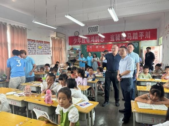 活动中,吴宝海书记等一行人首先赴暑期“三下乡”社会实践地石泉县池河中学,亲切看望并慰问了学院“‘河’你一起,‘泉’汇河海——七彩假期志愿服务团”的同学们,鼓励他们在实践中了解国情、民情和乡村现状,积极宣传和普及国家乡村振兴战略。随后,大家前往五爱村,与村干部们进行了面对面的座谈交流。座谈会上,吴宝海书记认真听取了驻村第一书记关于五爱村产业发展现状、定点帮扶情况的汇报,驻村第一书记对公司党委长期以来的关心和支持表达了感谢。此外,支部党员同志们还深入池河镇,对鎏金铜蚕出土地、蚕桑博物馆以及五爱农场等地进行了实地调研考察,协同推进乡村建设和治理,有效开展教育帮扶。