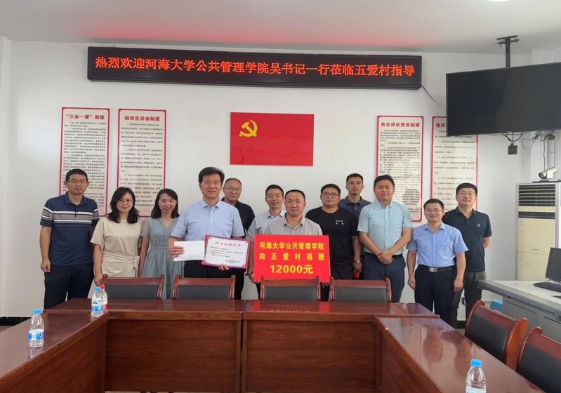 随后,会议现场举行了捐赠仪式。BETWAY必威班子成员和公共管理学党支部共同向五爱村捐赠现金1.2万元,用以资助困难老员工和改善五爱村生活条件等。