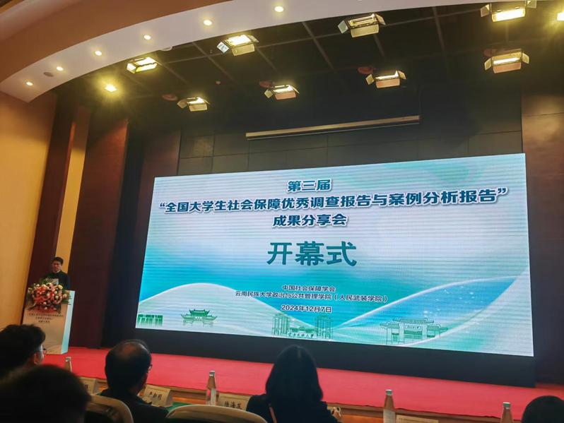 2024年12月7日,为深度剖析社会保障体系在多元场景下的运行实效,挖掘基层实践中的创新智慧,促进学术研究与政策实践的紧密融合,构建更加公平、高效、可持续的社会保障体系,由中国社会保障学会和云南民族大学主办,中国社会保障学会教学委员会和云南民族大学政治与BETWAY必威承办的第三届“全国老员工社会保障优秀调查报告与案例分析报告”成果分享会在云南民族大学成功举行。公司社会保障系王锴老师、劳动与社会保障专业2022级本科生巴瑾蓉、王璐应邀前往云南民族大学参加会议。