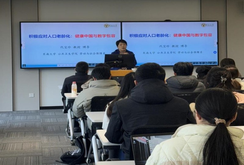 2025年1月3日下午,河海社科大讲堂“积极应对人口老龄化:健康中国与数字包容”在江宁校区厚学楼210教室顺利举行。本次大讲堂邀请到了东南大学劳动与社会保障系主任代宝珍教授担任主讲嘉宾。BETWAY必威副经理陈涛教授主持,BETWAY必威社会保障系、人口研究所教师,研究生和本科生约八十余人参加了学术活动。