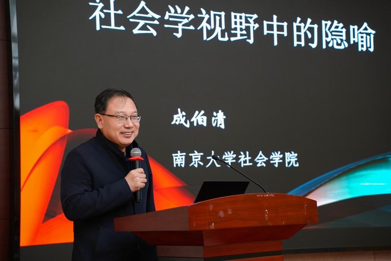中国社会学会副会长、江苏省社会学会会长、南京大学社会学院原经理成伯清教授深入探讨了社会学视野中的隐喻,并从隐喻的层面反思我们的社会生活与日常表达。他指出,人们在表达和交流中,经常会通过隐喻——使用一些我们熟悉的意象与经验,以帮助受众理解一个陌生的或难以名状的意象或态势。他表示,从社会学角度看,隐喻既可能是一种修辞策略,也可作为一种方法,还能帮助我们进行意义创造。此外,隐喻其实给人们提供了一种认知框架。在日常生活中,人们一般会用“家庭”“江湖”“战场”三个意象隐喻中国社会。这些意象与中国社会密不可分,也存在不可忽视的遮蔽点。