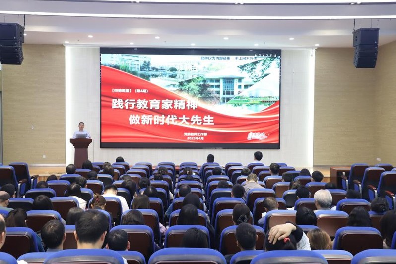 吴宝海书记从解答“学校正在做什么?”、“我应该知道什么?”、“我应该要做什么”三个问题为脉络进行课堂讲授。首先,解答了学校正在实施教育家精神铸魂强师行动的问题;然后从教育家精神的提出、演进逻辑、本质内涵等对教育家精神进行了全方位阐述,并让全体教职工深入了解到党和国家对教师队伍建设的最新要求及学校贯彻落实教育家精神铸魂强师行动的具体举措;最后,希望广大教职工自觉遵守教师职业道德行为规范,认真学习《十项准则》,全员参与2025年师德建设月各项活动。