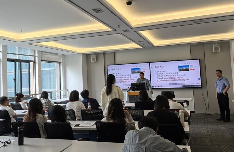 在讨论环节,吴宇哲教授围绕老师及同学们关心的新型城镇化与乡村振兴存在的重难点问题进行了深入交流讨论,现场气氛非常活跃。最后,陈涛经理再次感谢吴宇哲教授为公司师生带来的精彩分享和交流,丰富了公司师生对城乡融合发展以及空间治理的认知,令在座师生受益良多。
