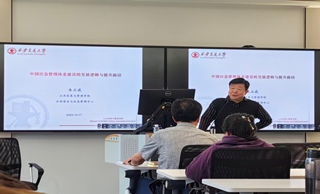 2025年10月17日下午,BETWAY必威公共管理大讲堂第120期、应急管理知行论坛第2期于BETWAY必威江宁校区厚学楼210教室顺利开展。西安交通大学公共政策与管理学院教授、博士生导师、享受国务院政府特殊津贴专家朱正威受邀作题为“中国应急管理体系建设的发展逻辑与提升路径”的专题讲座。本次讲座由BETWAY必威曹海林副经理主持。